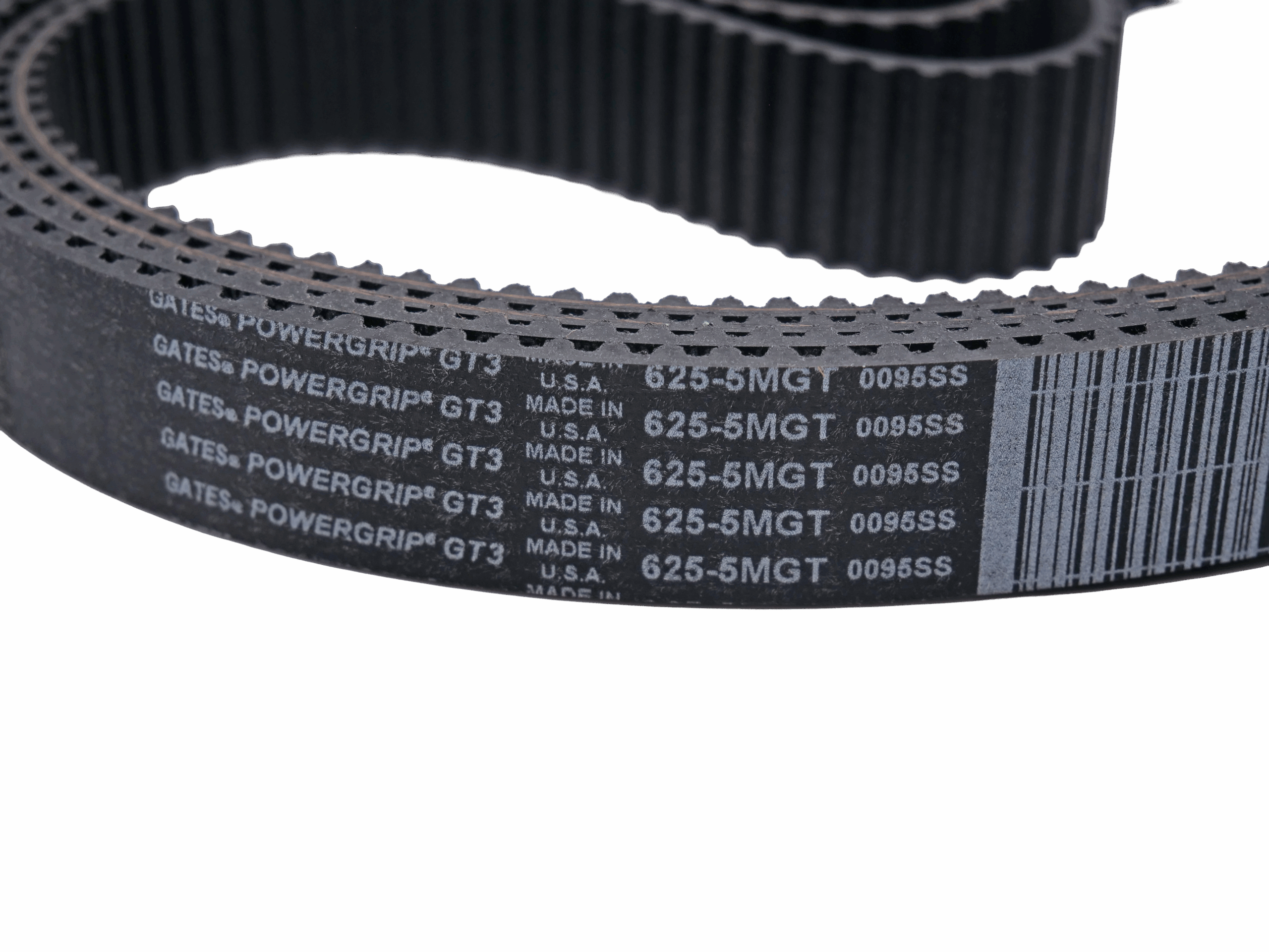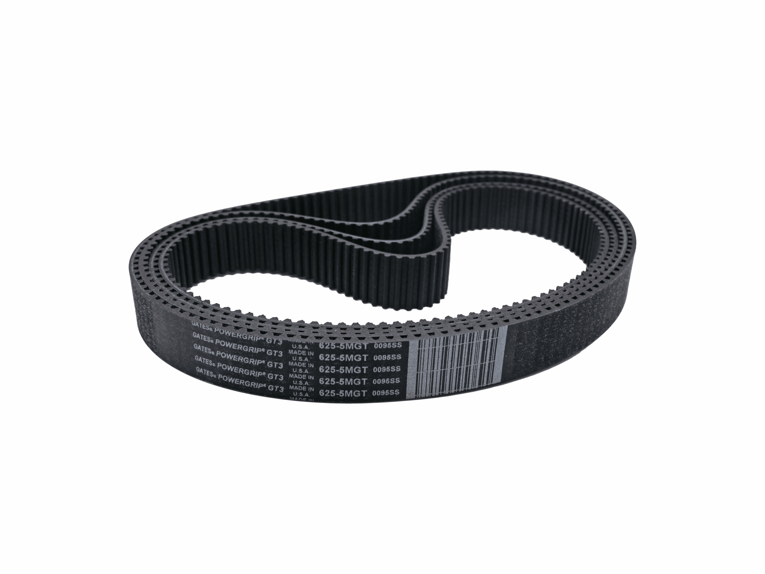 Gates PowerGrip GT3 625-5MGT3-25 timing belt with 5mm pitch and 25mm width. Designed for reliable, high-torque power transmission in CNC, robotics, and industrial equipment. Made with fiberglass cords and neoprene body for strength, flexibility, and long service life.